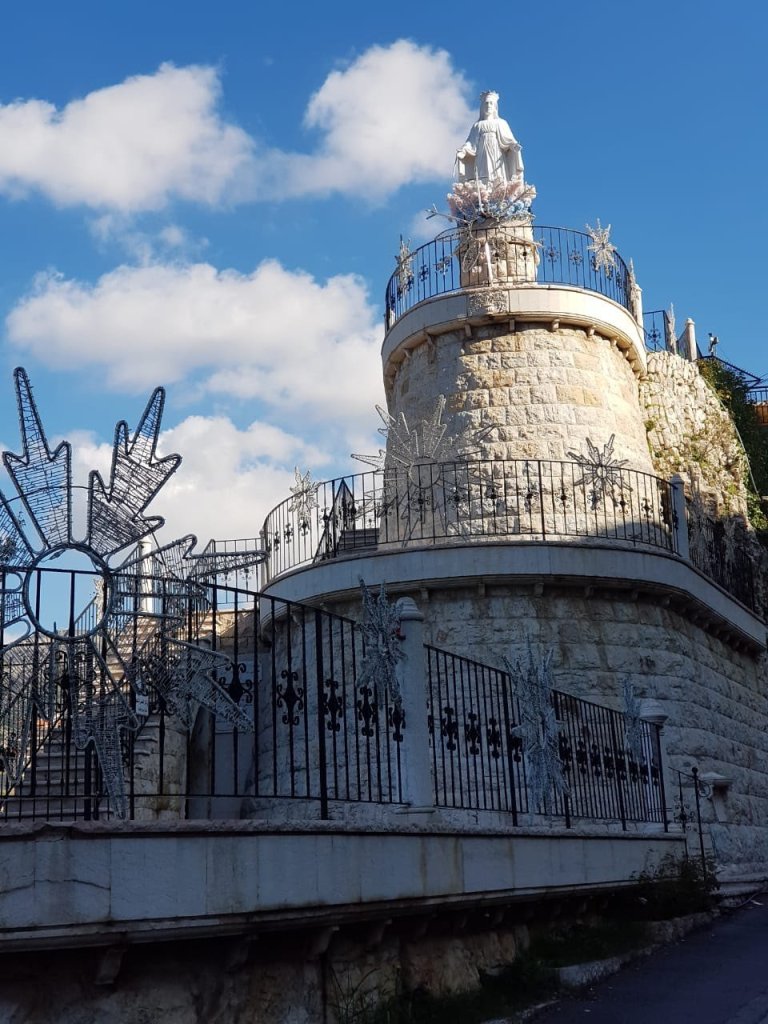 هو عبارة عن تمثال “عذراء الحبل بلا دنس” يرتفع أمام “معبر” جزين ولقد تم تصميمه في العام 1955. والمعبرهو ممر استراتيجي واساسي يجمع جزين بصيدا حفر في الصخر عام 1898.