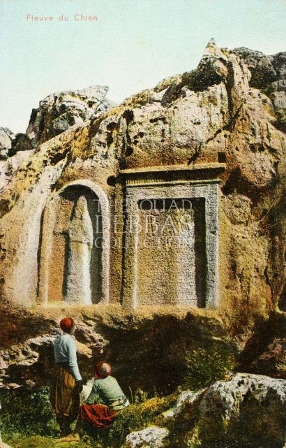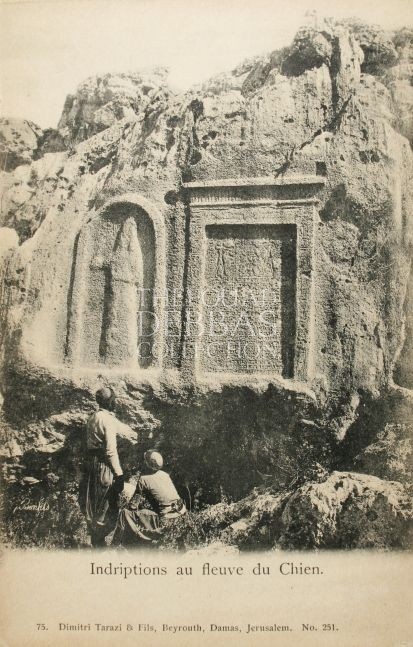 “نهر أدونيس، أيها المسافر، يعبر لبنان، وتراب لبنان لونها احمر فائق. بسبب الرياح العنيفة، التي ترتفع في هذه الأيام، تنقل التراب إلى النهر التي هي، بالنسبة للجزء الأكبر منها، ذات الصبغة الأرجوانية، وتعطي إلى النهر لون الدم، وبالتالي فإنه ليس هو الدم، كما يقولون، سبب هذه الظاهرة؛ ولكنها طبيعة الأرض”.